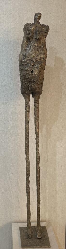 Elaine Surnow’s bronze sculptures possess a timeless quality, particularly focused on representations of the female nude, sometimes depicting slender, elegiac forms that emphasize the relationship between the body and gravity. Her fragile and strangely elongated figures are associated with the image of a resilient humanity.