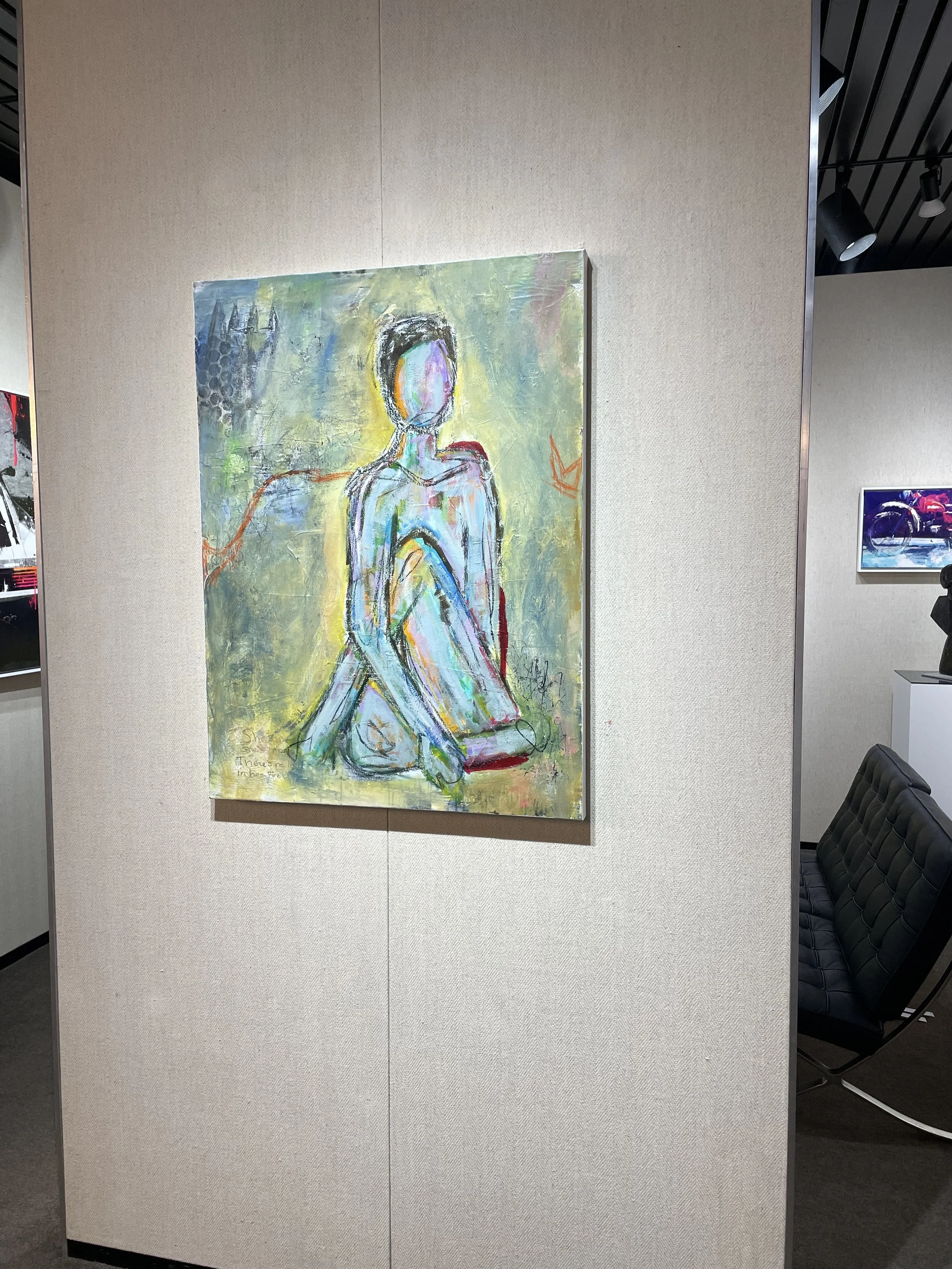 Sarah’s paintings touch on themes of identity and urban alienation and are artistically reflected through a strong understanding of color and composition. Beautiful gradient hues contrast bold abstractions, reminiscent of the works by European existentialists.